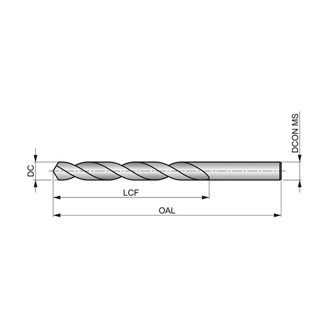 Kort borr med rakt skaft, enligt DIN 338 standard med 118° spetsvinkel, snabbstål med ånganlöpt för 4xD borrning utan urspåning i stål.